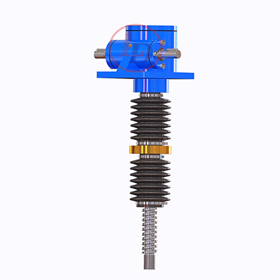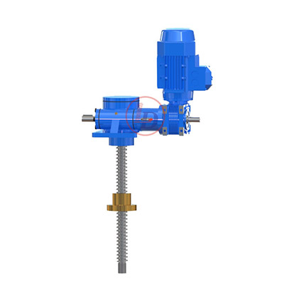 1、 JWM型(梯形絲杆型)適用於低速、低頻率的場合(hé), 主要構成部件為:精密梯形絲杆副與高精度蝸輪蝸杆副。