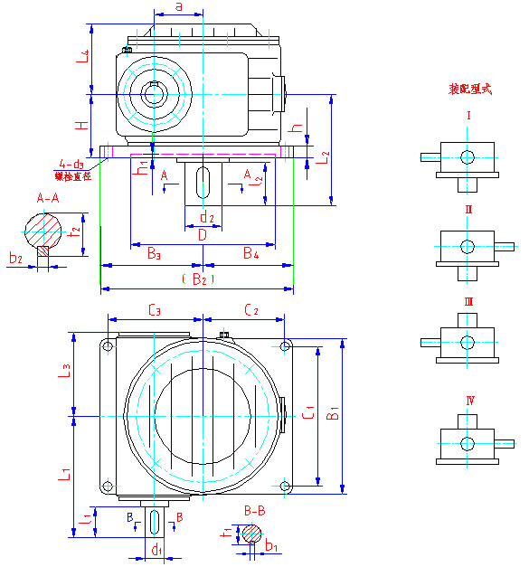 尺(chǐ)寸 型號 | a | B1 | B2 | B3 | B4 | C1 | C2 | C3 | D | h | h1 | i ≤ 12.5 | ||||