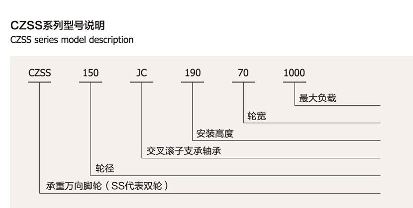 CZSS輪芯采用精密鑄鐵或精密壓鑄鋁合金成型,回轉機構采用專 業設(shè)計的非標滾珠軸承,經特殊工(gōng)業製造,已達到轉動靈活、抗衝擊(jī)、耐疲勞的作用。輪(lún)麵采用(yòng)化學反應澆鑄的優 質進(jìn)口聚氨酯彈性體,行走噪音低、無壓痕、保護地麵、耐磨、抗切割。