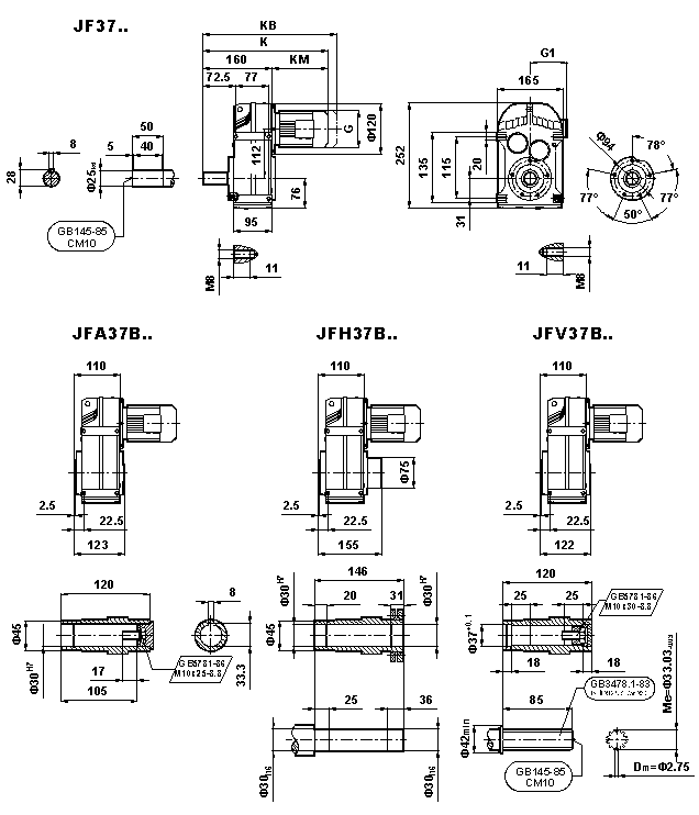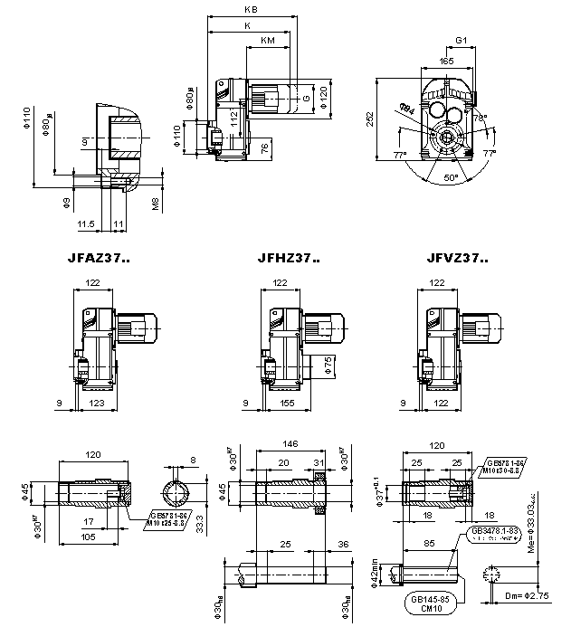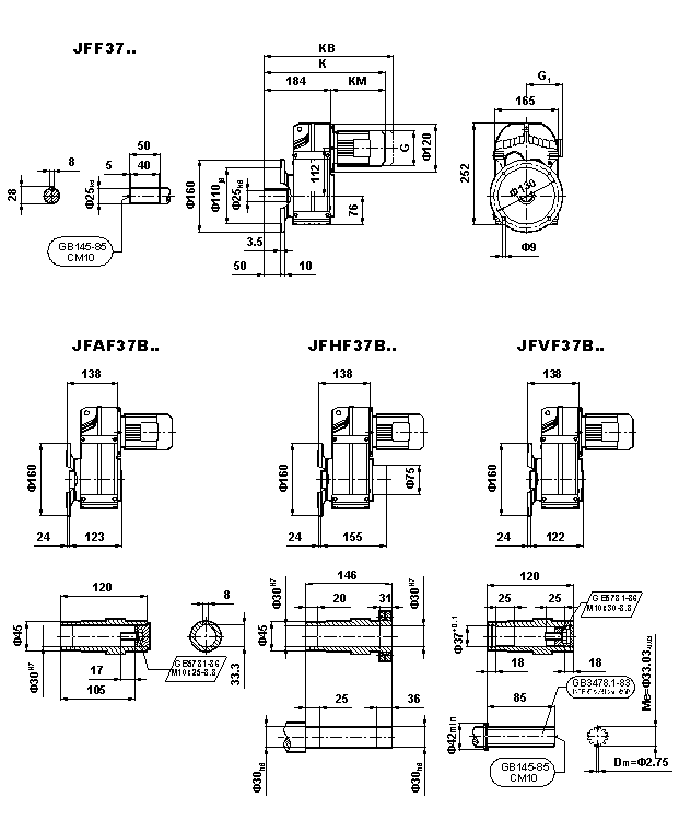 外形安裝尺寸(cùn)(F37、FA37B、FH37B、FV37B、FF37、FAF37B、FHF37B、FVF37B、F..37/G、FA37、FH37、FV37、FAZ37、FHZ37、HVZ37)