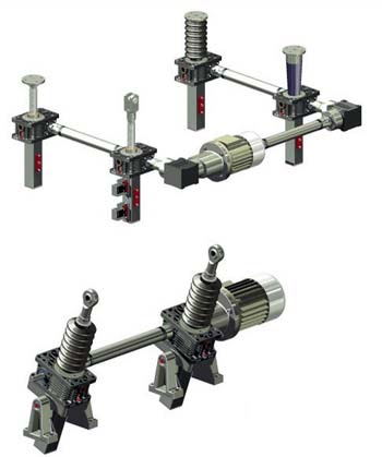 絲杆升降機平台無論是兩台、四台還是多台聯動在選擇驅動的時候我們建議盡量(liàng)采用一台電(diàn)機來完成,因為不同電機每分鍾轉速(sù)都存在速差,如果選用多台驅動工作平台很難達到同步穩定(dìng)。