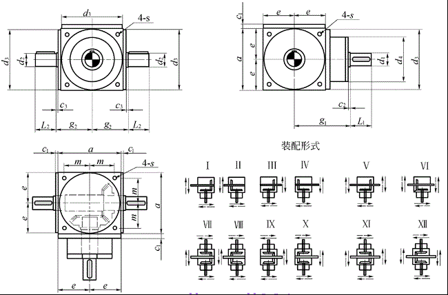 注: a、軸d2可作為輸入端,此時(shí),SPL型(xíng)換向器在許用速度範圍(wéi)內可作增速(sù)傳動 b、如果數隻換向器串連使用,建議_SPV型 c、訂貨時,請指明地腳螺紋(wén)孔位置 |
