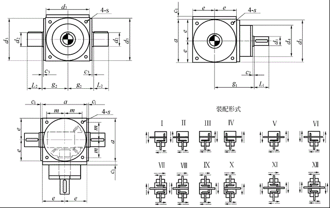 注(zhù):d2可作為輸入端,此時,SPS型轉向箱在許用速(sù)度範圍內可作換(huàn)向傳動 |