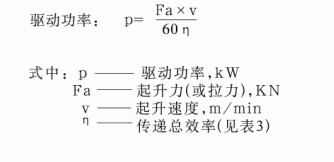 根據選型資(zī)料已知(zhī)螺杆傳動(dòng)的許用起(qǐ)升速度、扭矩和功率、其參數(shù)適用於溫度為20°C、工作持(chí)續(xù)率為20%/h或(huò)30%/min的條件下;對粗線範(fàn)圍內的(de)參數,使用時升降機會產生過熱,應盡量避免選用,否則(zé)_采用有效措施。根據螺杆(gǎn)起升負荷及(jí)起升速度,按照下列公(gōng)式計(jì)算升降機的驅動功率,再根據選(xuǎn)型資(zī)料,查出所需升降(jiàng)機的(de)型號。