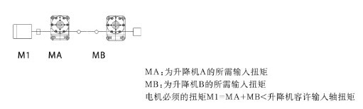 (3)當升降機傳動配置為串(chuàn)聯時(即(jí)同一軸(zhóu)線(xiàn)配置了兩個或以上(shàng)數量的升降機)如圖須對各