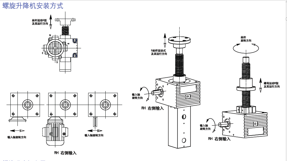 S型螺旋升降機的原理為蝸杆驅動蝸輪旋轉,蝸(wō)輪中間為內螺紋孔機構(與(yǔ)絲杠相齧合),再將旋(xuán)轉運動傳遞至絲杠上下直線運動。