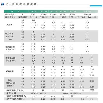 SJ係列螺旋(xuán)絲杆升降機采用方形鑄鋼殼體設計,體積小、重量(liàng)輕結構緊湊。負載範圍在(zài)0.5T~20T,推杆線速度可達30mm/s,_輸入速度為1500rpm,在-10°到70°之間的環境溫度下都可安裝使用,輸入型式多樣,安(ān)裝方便,可垂直(zhí)、水平、任意角度安裝,可單軸輸入,雙軸輸入,法蘭輸入。