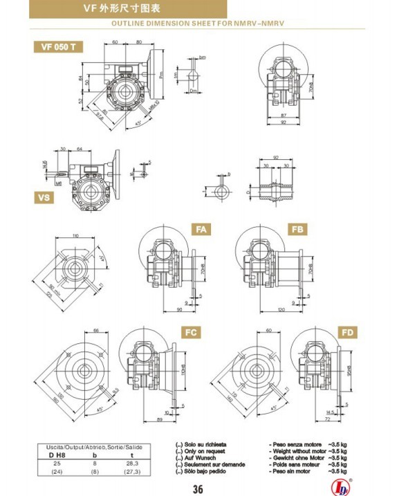 雙級型號VF030/040、VF030/050、VF030/063、VF040/075、VF040/090、VF050/105、VF050/110、VF063/130、VF063/150。