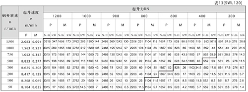 第三步:查表(biǎo)6,蝸杆在500r/min,起升速度為0.583m/min,起升負荷為20KN時,許用功(gōng)率為0.9KW,滿足要求,應選擇SWL5型