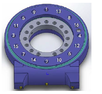 從內圈或外圈開始,將所有螺栓進行(háng)對角擰緊至30%擰緊力矩,然後重複(fù)對角扭緊至50%擰緊力矩,_後對角擰緊至(zhì)_擰緊力矩。