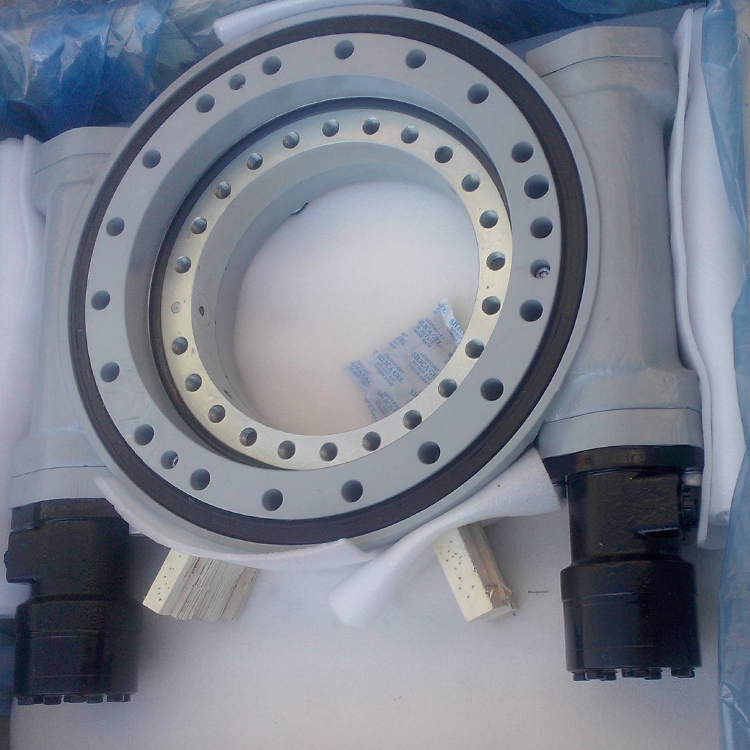 減速機通常由蝸杆、渦輪式回轉支承、殼(ké)體、動力源組成,一般配直流行(háng)星減速電機或交(jiāo)流減速電機為(wéi)主;在(zài)工程機械上主要配(pèi)液壓馬達作為動力驅動係(xì)統。